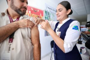 “Ahorita tenemos la campaña de vacunación contra influenza, COVID y neumococo, que son los principales virus y bacterias que están circulando en esta temporada invernal. Aquí es muy importante invitar a todos nuestros sinaloenses a que sigan aplicándose estas vacunas. La campaña empezó en el mes de octubre y termina hasta el mes de marzo”, dijo.