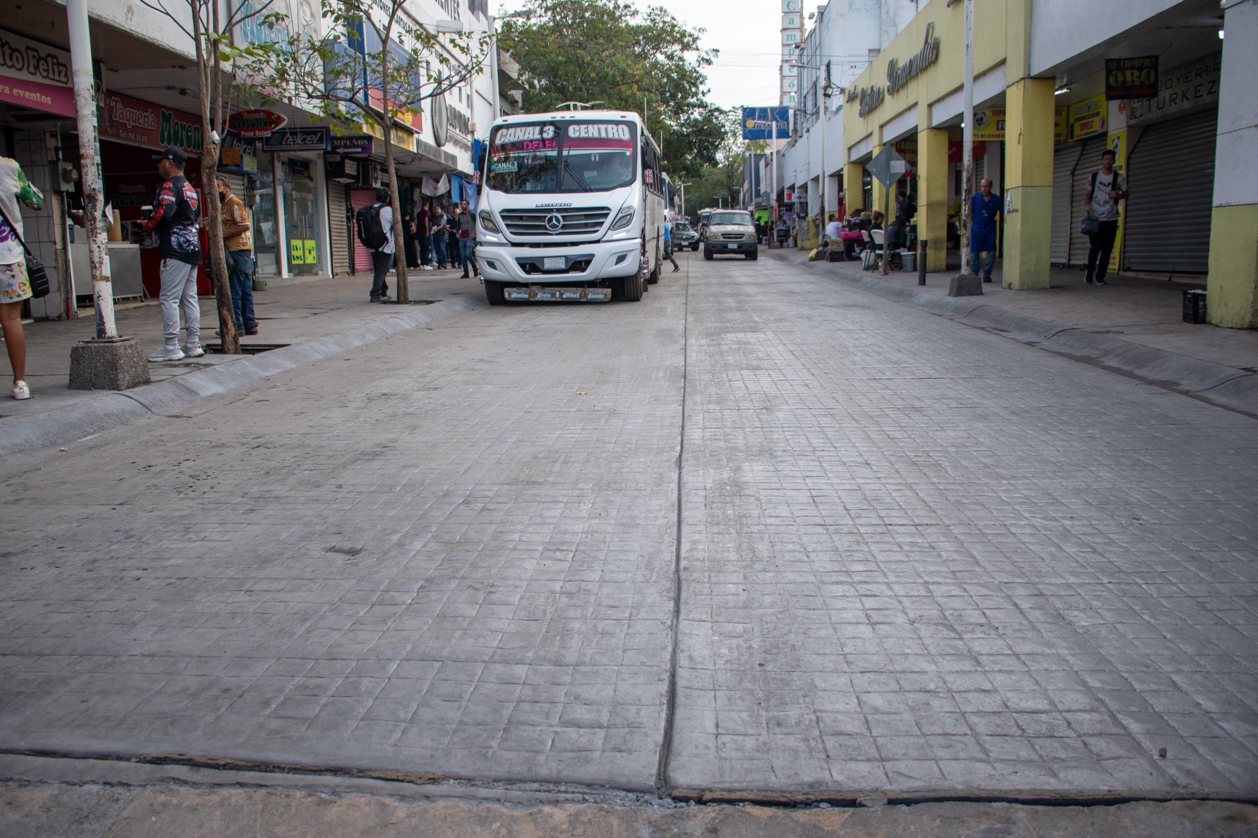 Culiacán, Sinaloa a 19 de enero de 2026.- El proyecto de rehabilitación de pavimentación en concreto estampado, ha concluido sobre la calle Ángel Flores, ubicada en el corazón del primer cuadro de la ciudad.