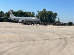 El despliegue de personal y medios se realizó vía aérea desde la Ciudad de México y otras entidades del país, empleándose una aeronave Boeing 737 de transporte pesado; 2 aviones T-6C y