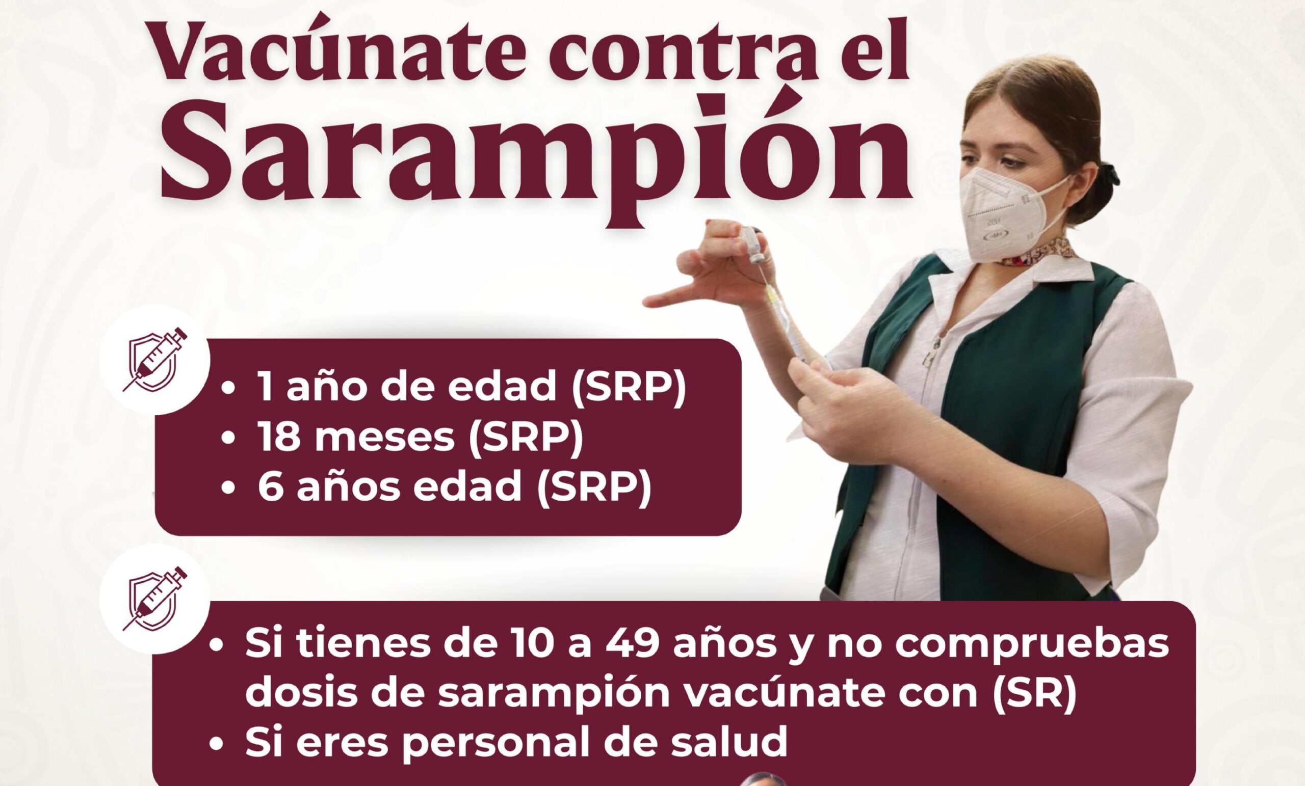 Asimismo, se exhorta a vacunarse a las personas de 10 a 49 años de edad que no cuenten con comprobante de vacunación contra sarampión, así como al personal de salud.