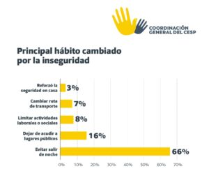 El impacto más inmediato es el repliegue social. El 85% de las personas reconoce haber cambiado sus hábitos por la inseguridad.
