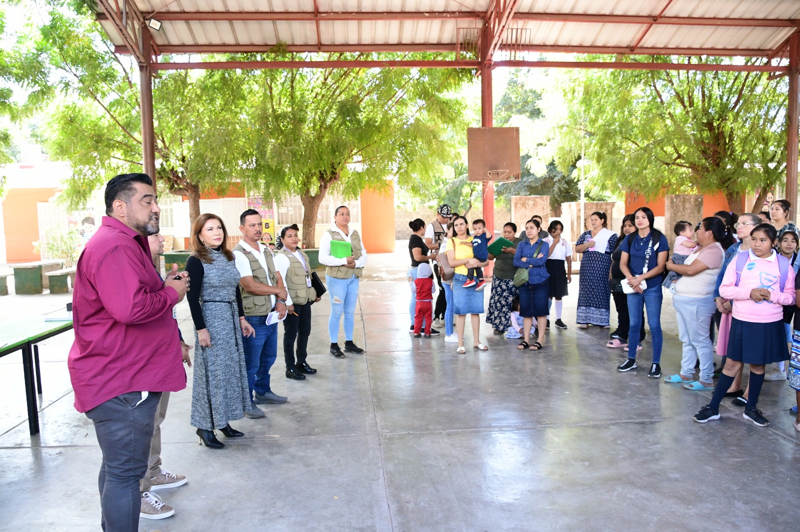 La jornada inició en el Jardín de Niños “Benito Juárez”, donde las autoridades presenciaron la campaña de vacunación contra el sarampión, implementada por la Secretaría de Salud.
