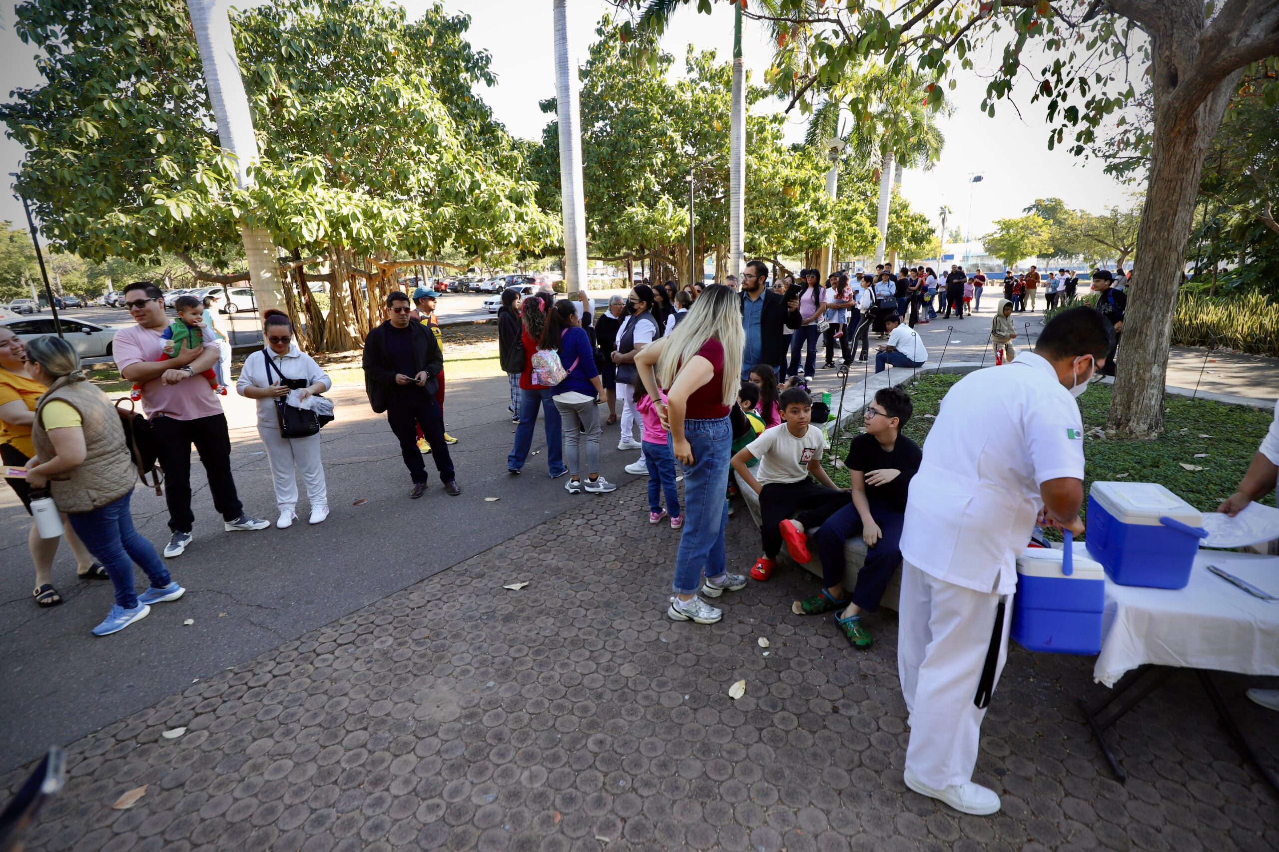 Desde el macrocentro ubicado en el Jardín Botánico de Culiacán, el secretario de Salud, Dr. Cuitláhuac González Galindo, reconoció y aplaudió el interés de la ciudadanía por acudir a vacunarse, destacando la importancia de mantener a la población protegida contra esta enfermedad.