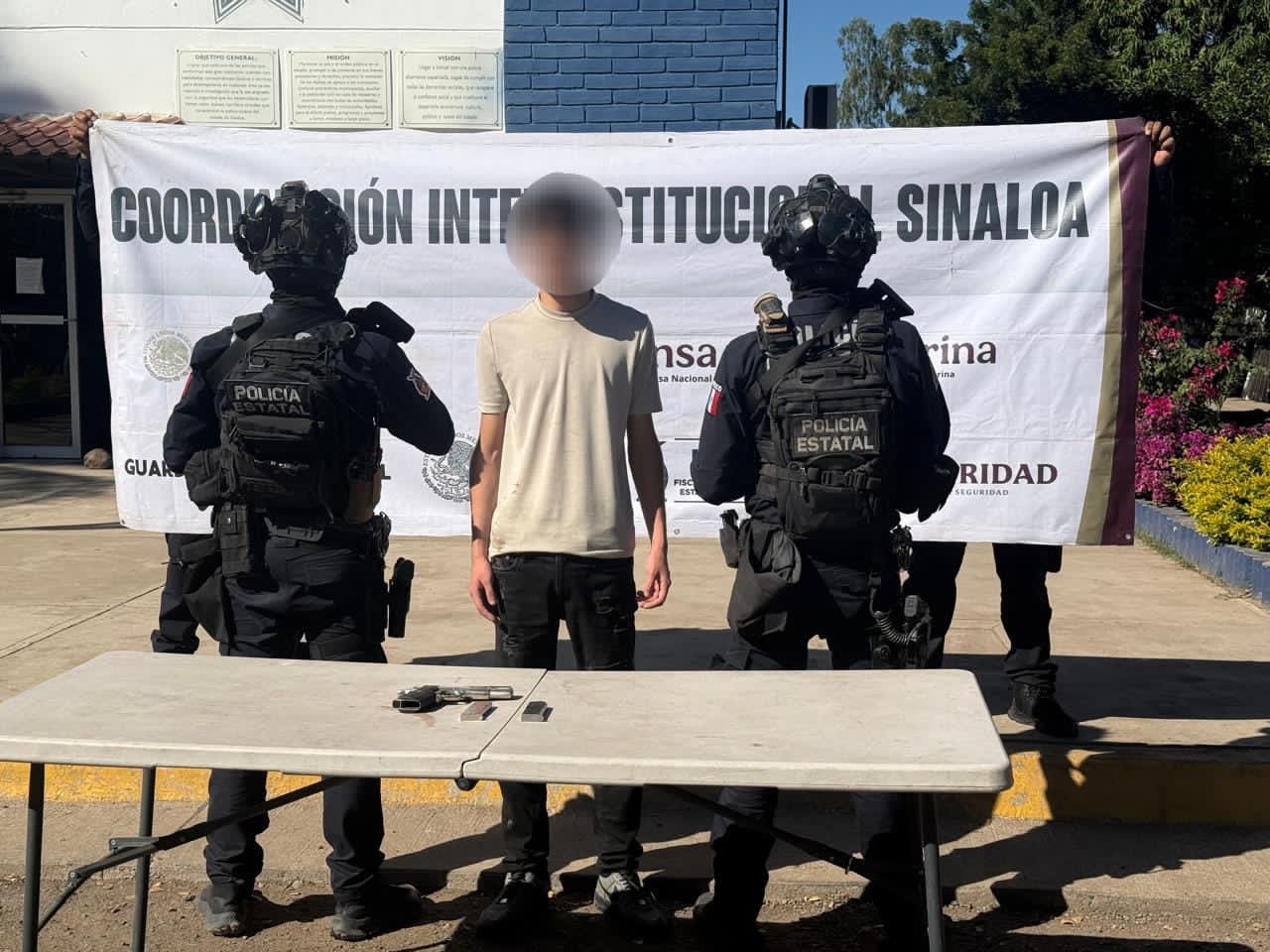 Culiacán, Sinaloa, a 14 de febrero de 2026.- Elementos de la Secretaría de Seguridad Pública del Estado, a través de la Policía Estatal Preventiva, en coordinación con el Ejército Mexicano, la Guardia Nacional, la Secretaría de Marina, la Secretaría de Seguridad y Protección Ciudadana, la Fiscalía General de la República y la Fiscalía General del Estado, detuvieron a un civil y le aseguraron un arma, cargadores y cartuchos.