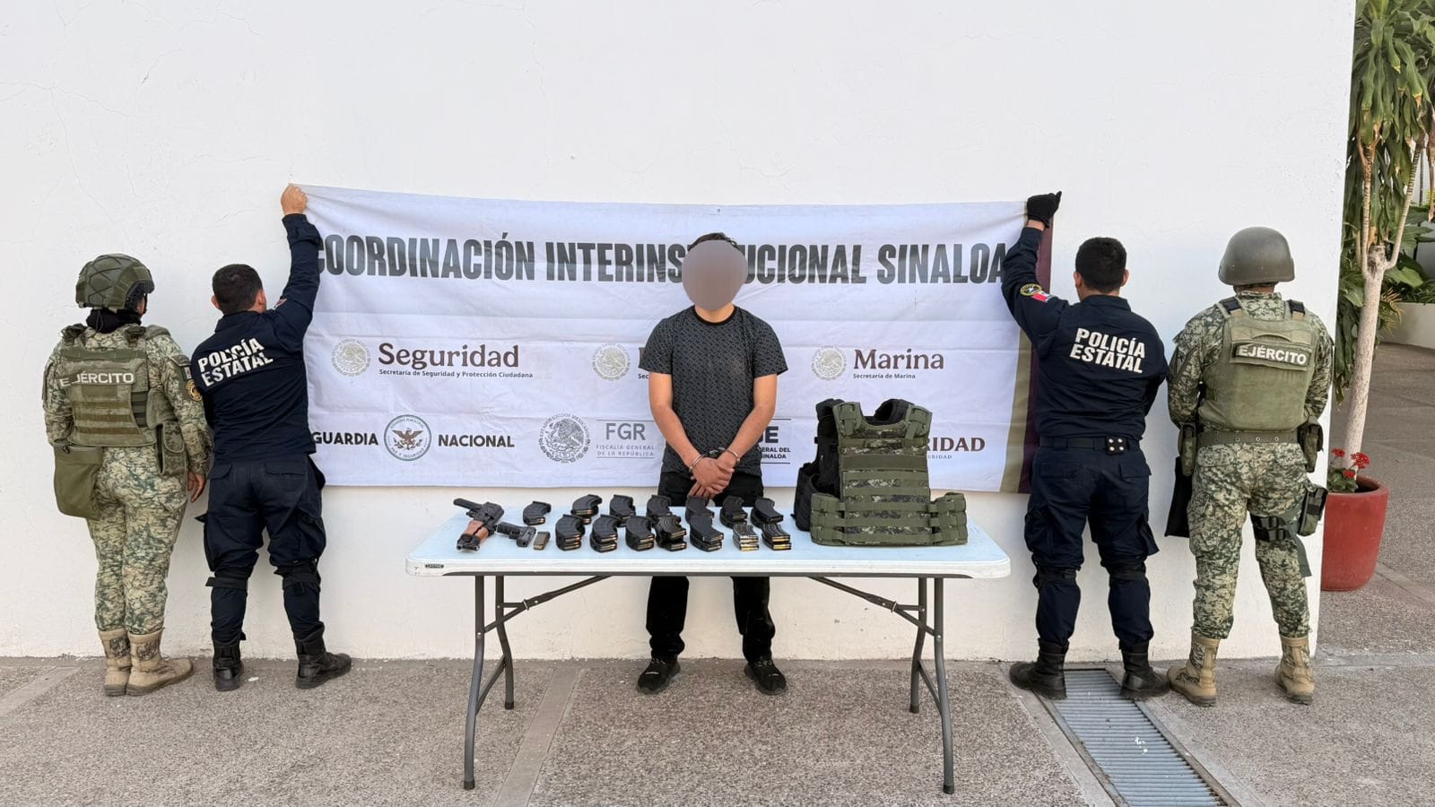 Culiacán, Sinaloa, a 15 de febrero de 2026.- pElementos de la Secretaría de Seguridad Pública del Estado, a través del Grupo de Operaciones Especiales Sinaloa (GOES) de la Policía Estatal Preventiva, en coordinación con el Ejército Mexicano, la Guardia Nacional, la Secretaría de Marina, la Secretaría de Seguridad y Protección Ciudadana, la Fiscalía General de la República y la Fiscalía General del Estado, liberaron a una persona privada de la libertad, detuvieron a un civil y aseguraron armas, vehículos y municiones en Culiacán.