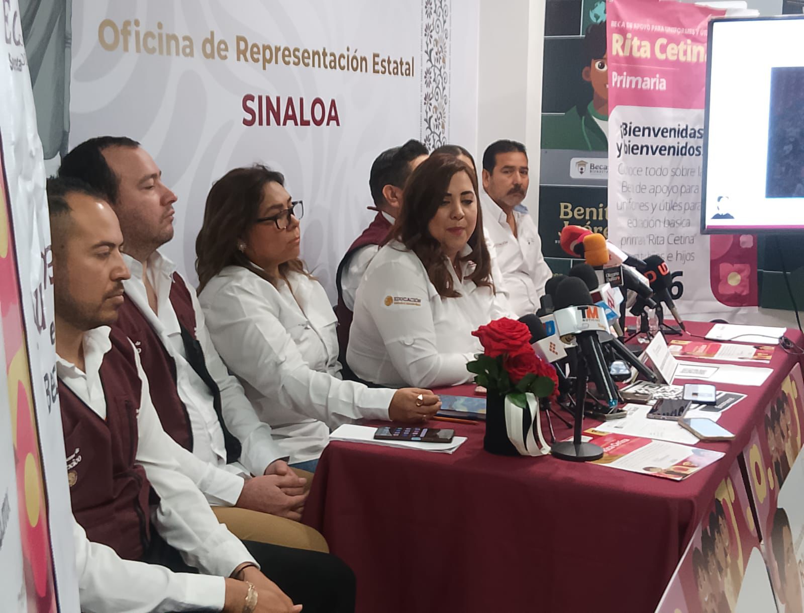 Flores Ojeda señaló que, con la implementación de la beca universal Rita Cetina para primaria, se proyecta beneficiar a más de 100 mil alumnos en Sinaloa, desde primer hasta sexto grado, ampliando la cobertura inicialmente prevista.