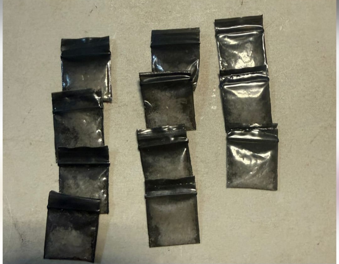 Los elementos preventivos, al verificar los datos de la unidad ligera, encontraron que contaba con alteraciones. Asimismo, se aseguraron 11 envoltorios que contenían en su interior una sustancia con características de metanfetamina, con un peso aproximado de 11 gramos.