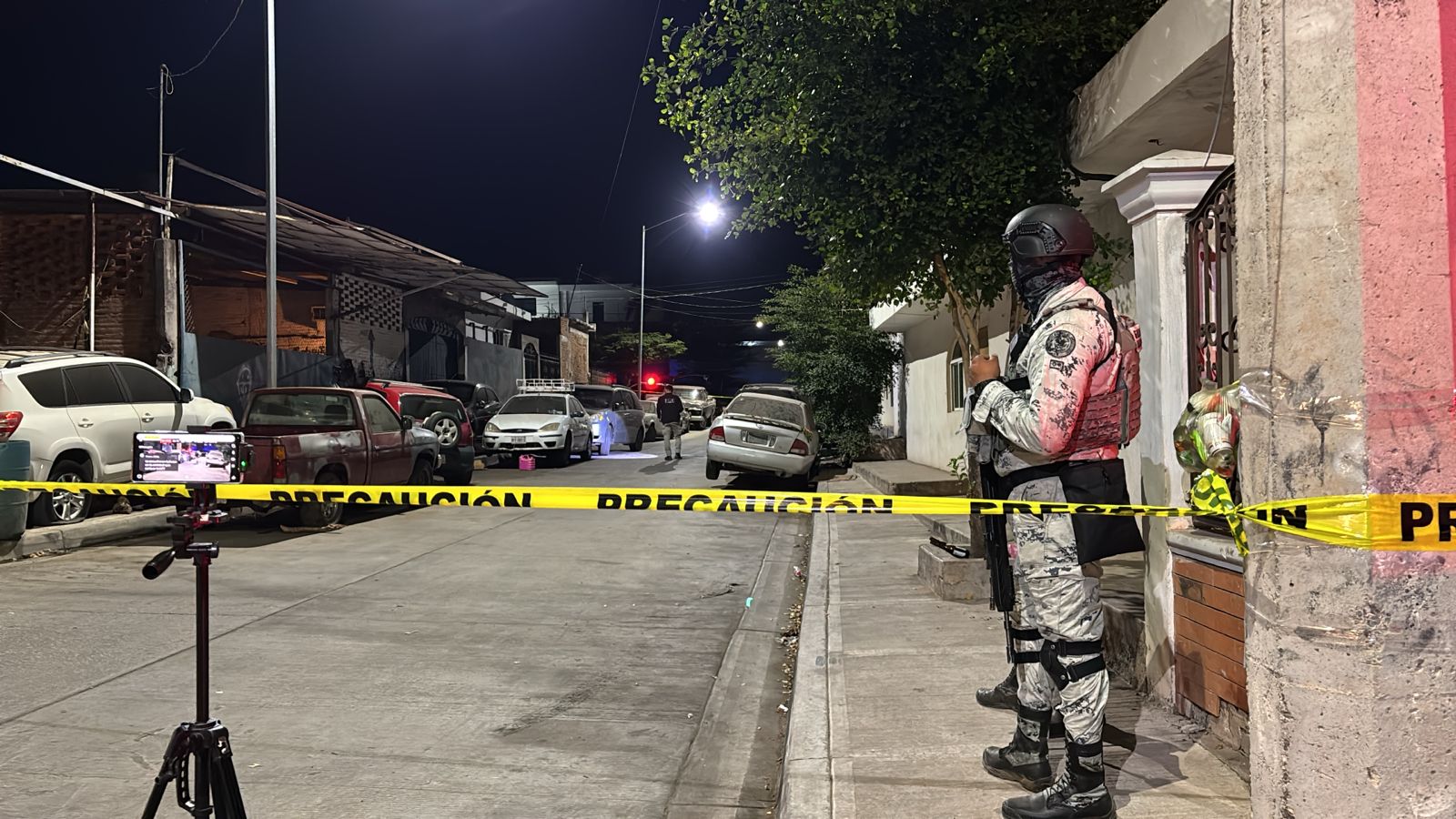 En el lugar de los hechos, la policía localizó varios casquillos de arma de fuego de grueso calibre, los cuales fueron asegurados mediante el acordonamiento con cinta amarilla.