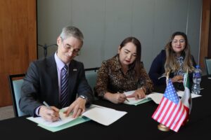 La firma fue encabezada por el cónsul de Estados Unidos, Drew Hoster, y contó también con la participación de Cindy Isabel Fuentes Gutiérrez, Directora General de Investigación Pericial de la Fiscalía General del Estado de Sinaloa, en el marco de la cooperación bilateral en materia de seguridad, mediante la cual se busca reforzar el trabajo científico y técnico de los laboratorios forenses de la institución.
