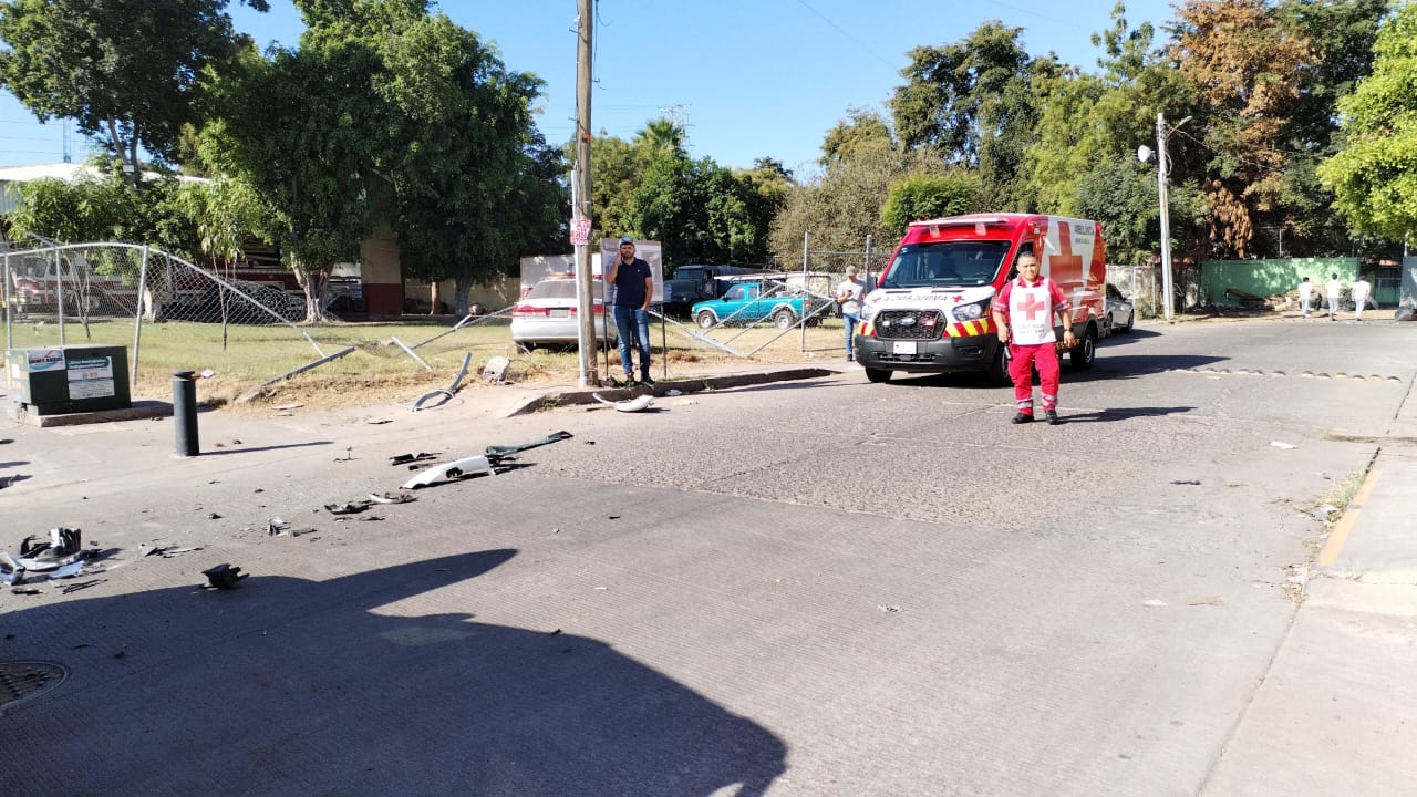 El choque fue tan fuerte que el automóvil Honda perdió el control tras el impacto, derribando la malla ciclónica de la barda de la estación de bomberos Arboledas y deteniéndose en medio de las canchas de fútbol de pasto ubicadas dentro del cuartel.