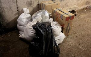 Durante recorridos preventivos y de seguridad sobre la carretera Rosario – Mazatlán, el personal policial detectó, sobre la cinta asfáltica, objetos conocidos como ponchallantas, por lo que se detuvo la marcha del convoy para realizar reconocimientos a pie; fue en las inmediaciones de un puente donde los elementos del GOES localizaron abandonadas cajas de cartón, bolsas y costales.